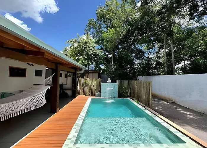 Die Bali Bonito | Casa Com Piscina Integrada E Design bietet einen privaten Swimmingpool und liegt ca. 1 km vom Projekt Jiboia entfernt.